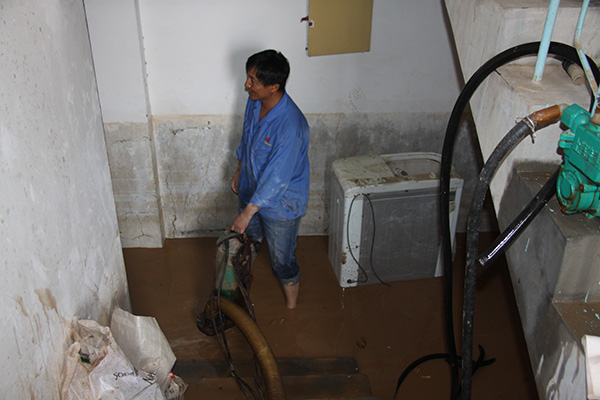 居民住宅楼地下室被洪水漫灌